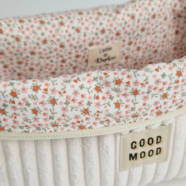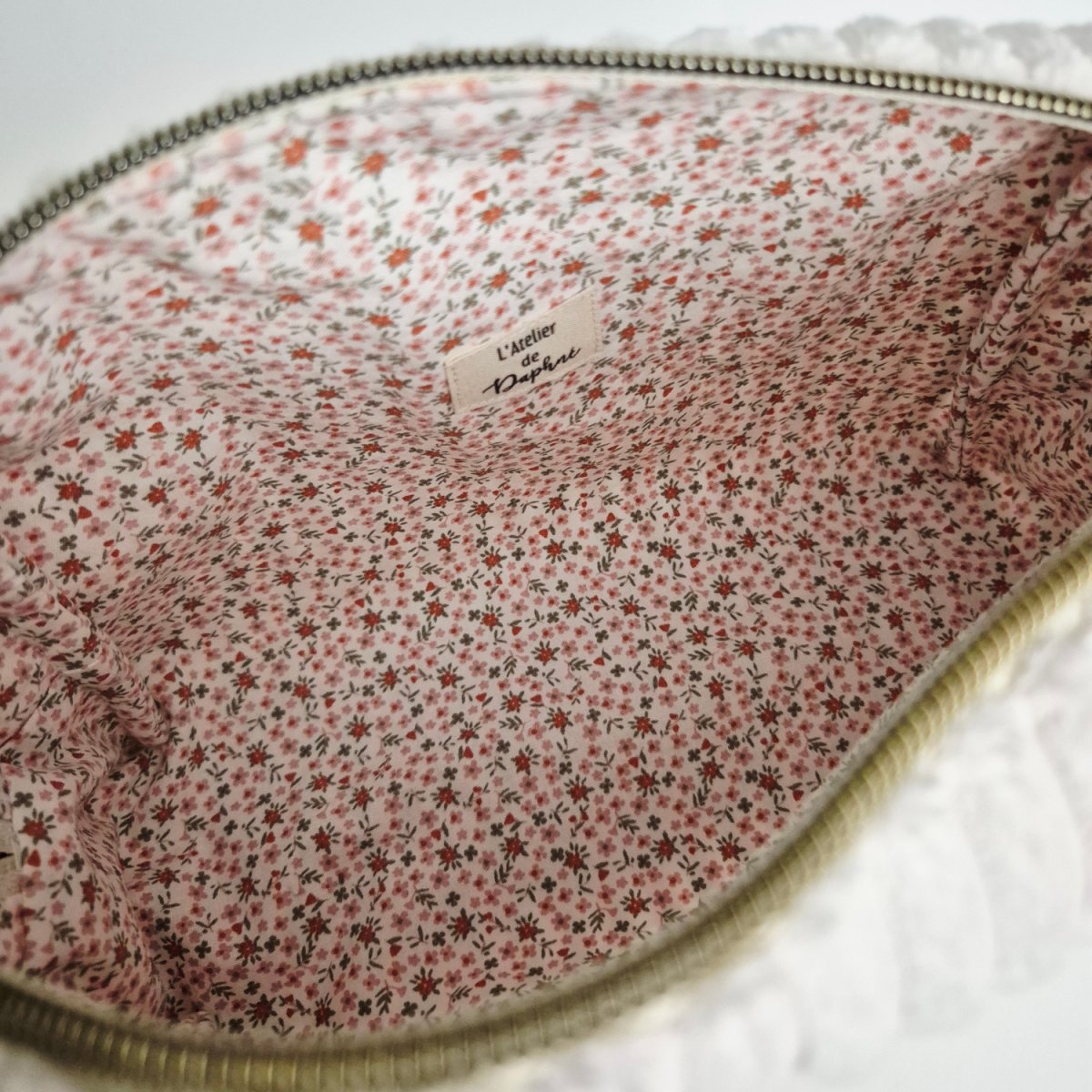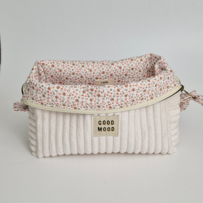 Grande trousse en velours Maxine, faite à la main avec soin. Ce modèle de trousse en velours possède des côtes larges pour un look élégant et intemporel. À l'intérieur, vous trouverez un doux tissu en coton pour protéger vos objets personnels.