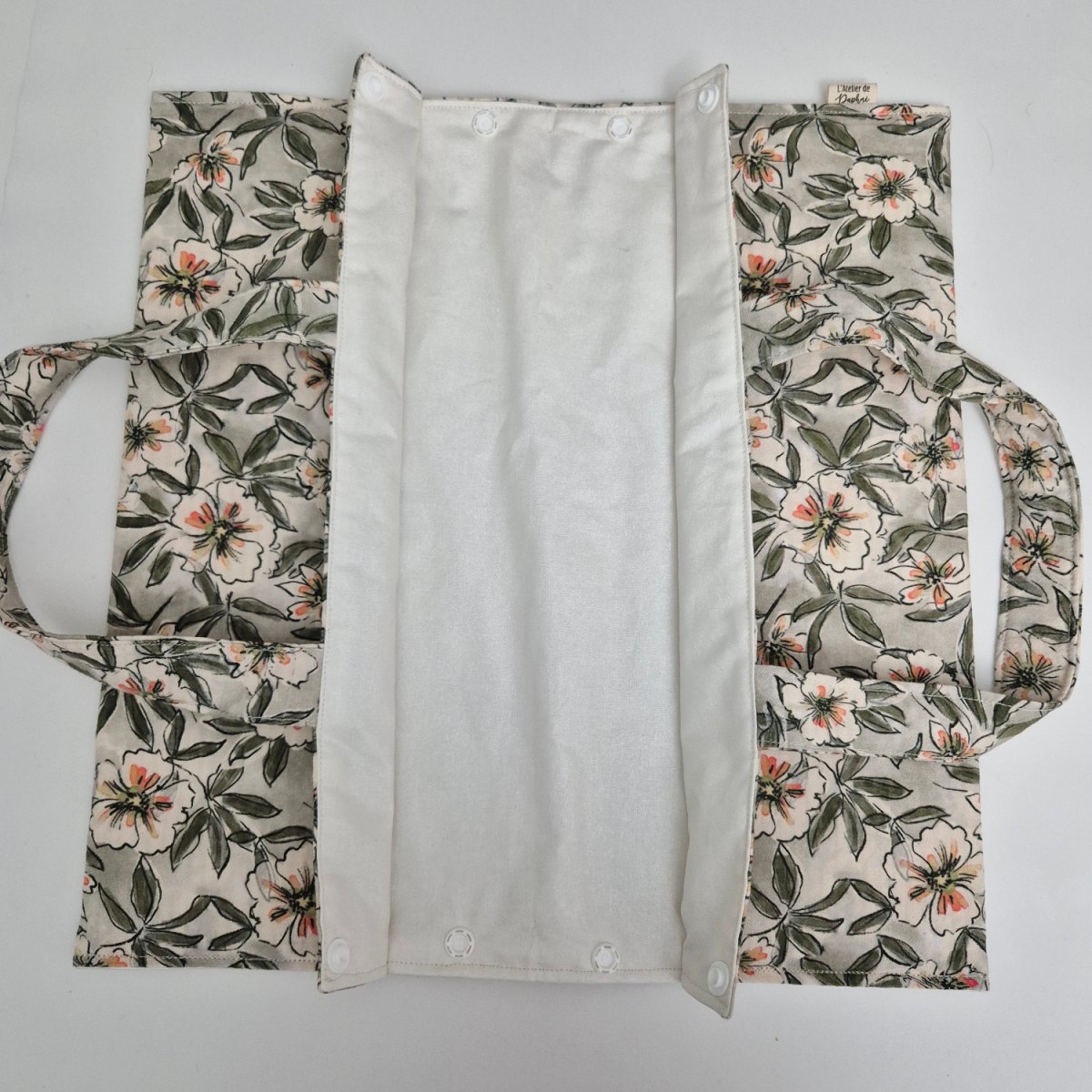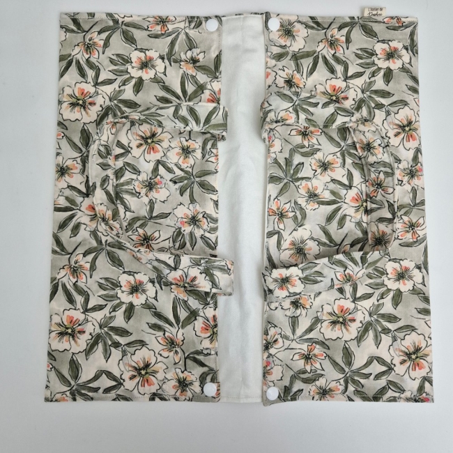 Ses astucieux boutons pressions permettent une ouverture facilitée lors du passage du plat. Son exétieur est en coton, et il est muni d'un léger rembourrage pour une belle tenue.
