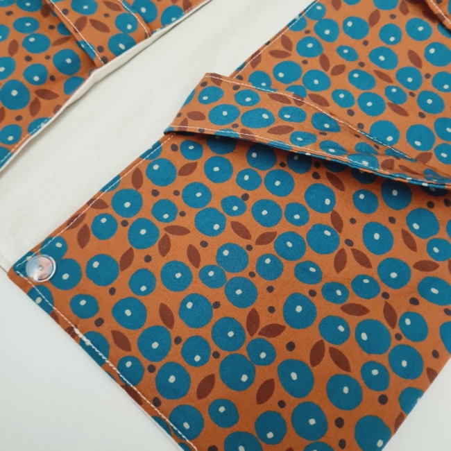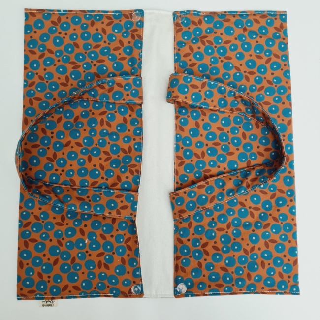Ses astucieux boutons pressions permettent une ouverture facilitée lors du passage du plat. Son exétieur est en coton, et il est muni d'un léger rembourrage pour une belle tenue.