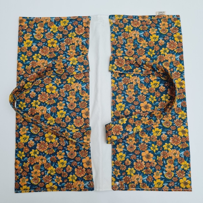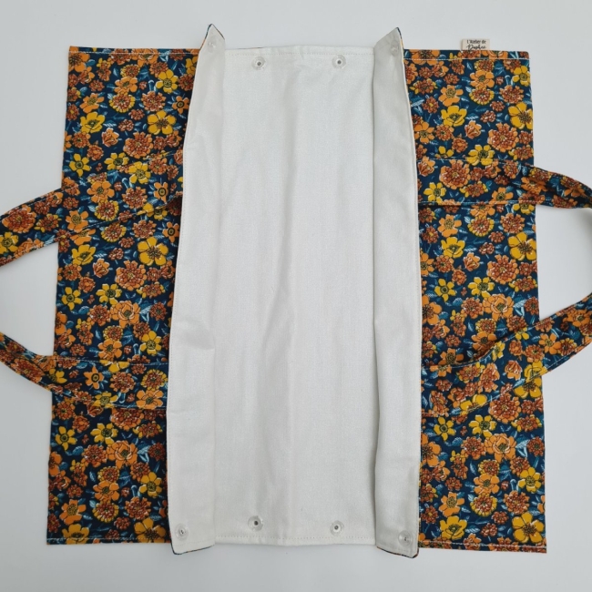 Ses astucieux boutons pressions permettent une ouverture facilitée lors du passage du plat. Son exétieur est en coton, et il est muni d'un léger rembourrage pour une belle tenue.