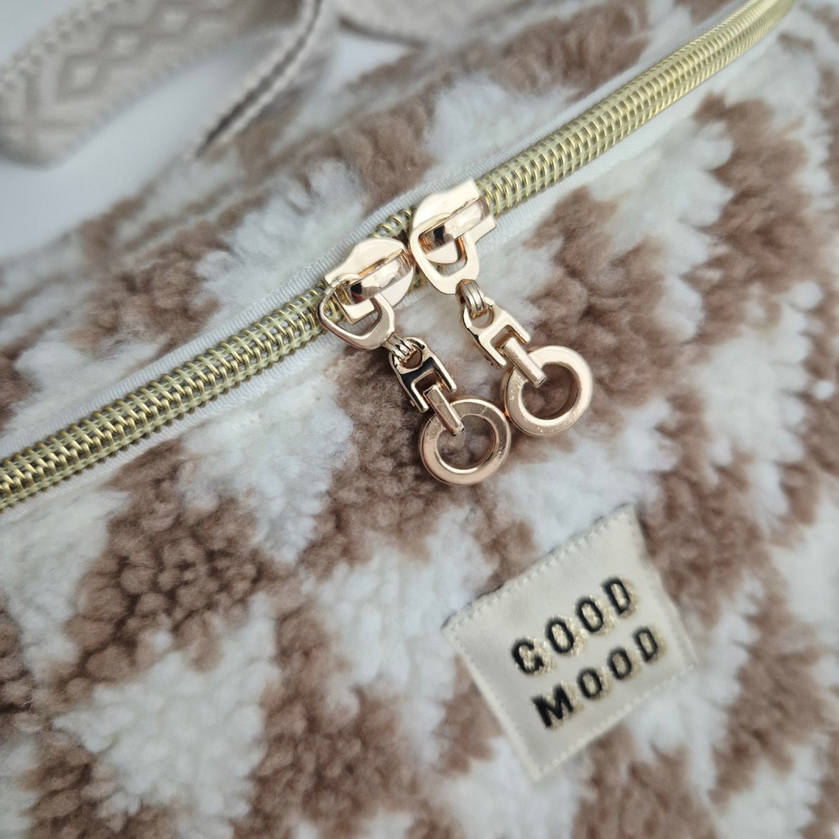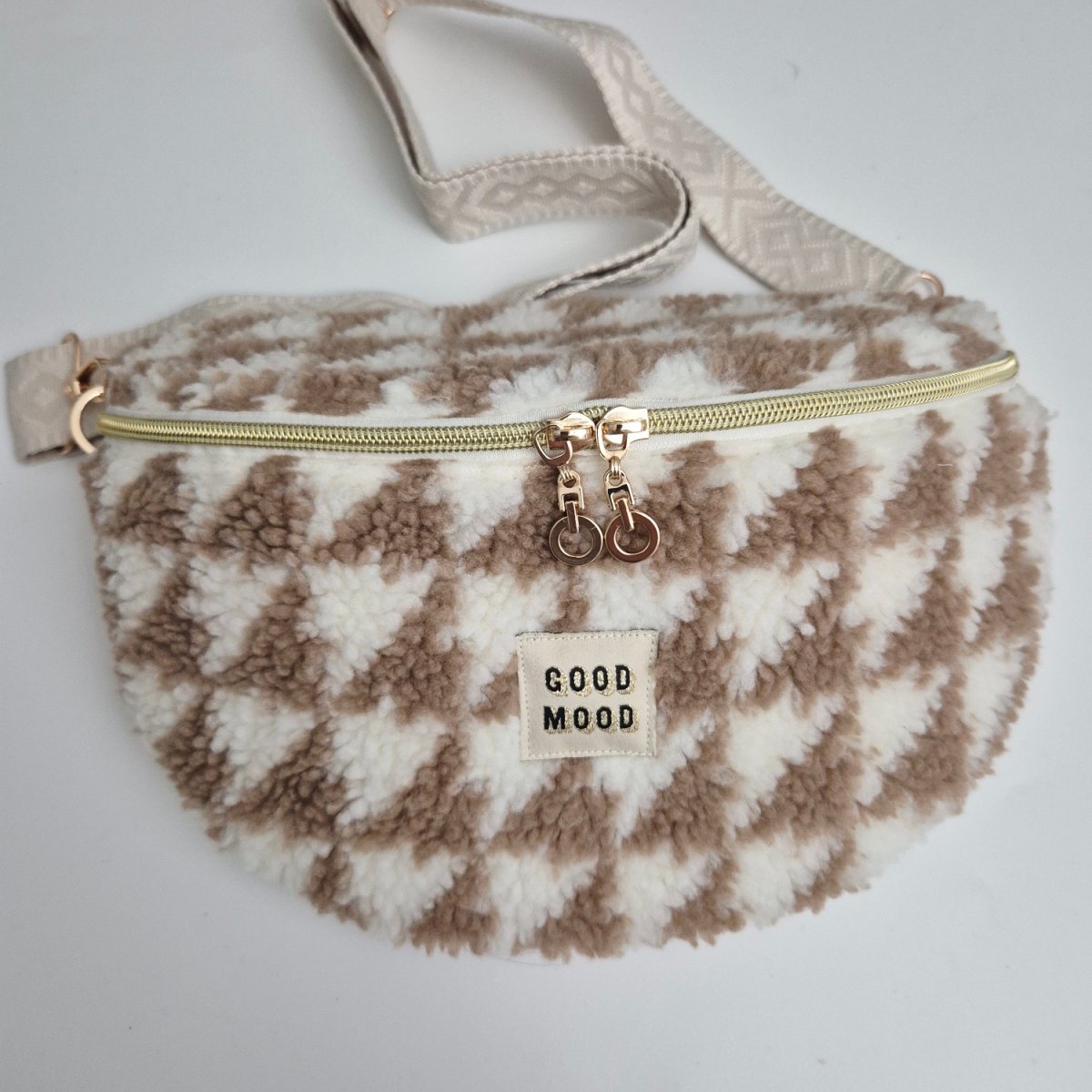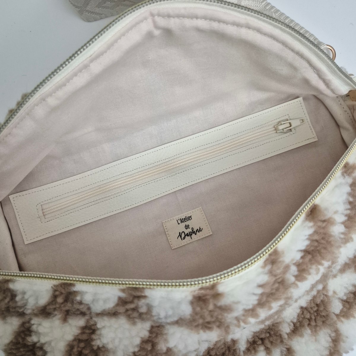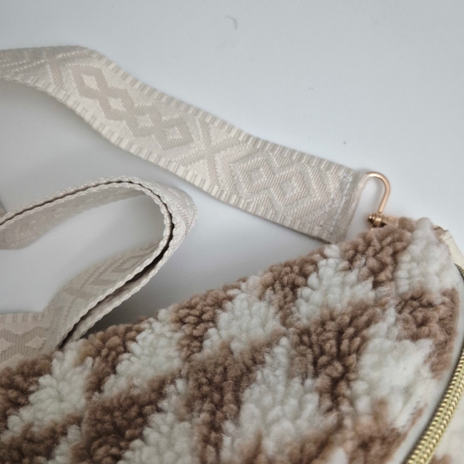 Sac banane  simili fourrure, finitions dorées.