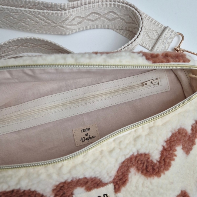 Poche intérieure, doublé en coton, sangle amovible réglable.