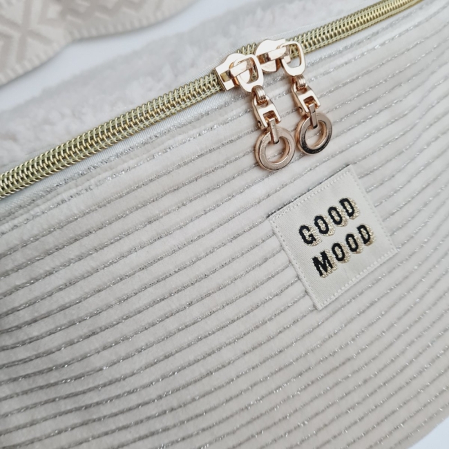 Sac banane bi-matière fausse fourrure et velours lurex avec ses rayures brillantes, finitions dorées.