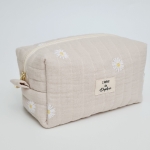Découvrez la trousse double gaze Marguerite, un accessoire artisanal textile parfait pour ranger vos essentiels avec style.