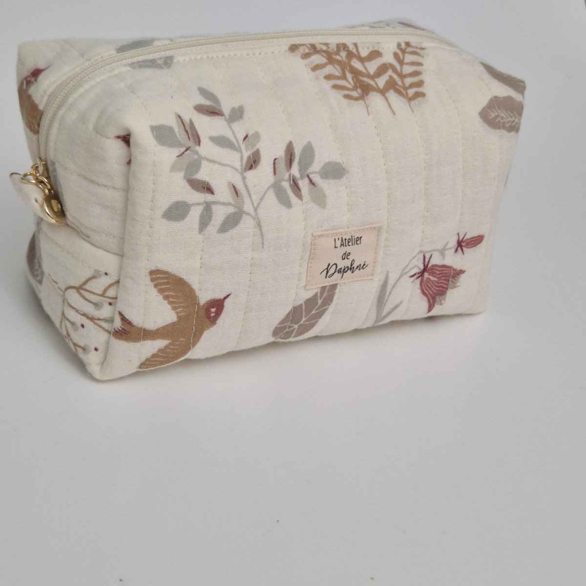 Découvrez la trousse double gaze Matilda, un accessoire artisanal textile parfait pour ranger vos essentiels avec style.