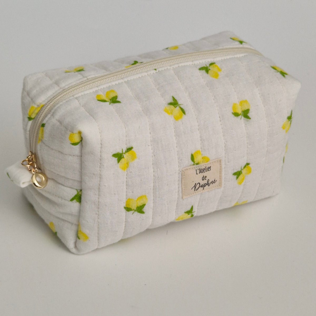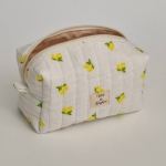 Cette trousse matelassée est conçue avec un intérieur en tissu PUL rose, beige, ou nylon imperméable vert de gris, garantissant la protection de vos produits de beauté ou de maquillage. Sa petite poignée sur le côté la rend facile à transporter, et avec ses dimensions de 17x9x9cm, elle est idéale pour glisser dans votre sac à main ou bagage de voyage.