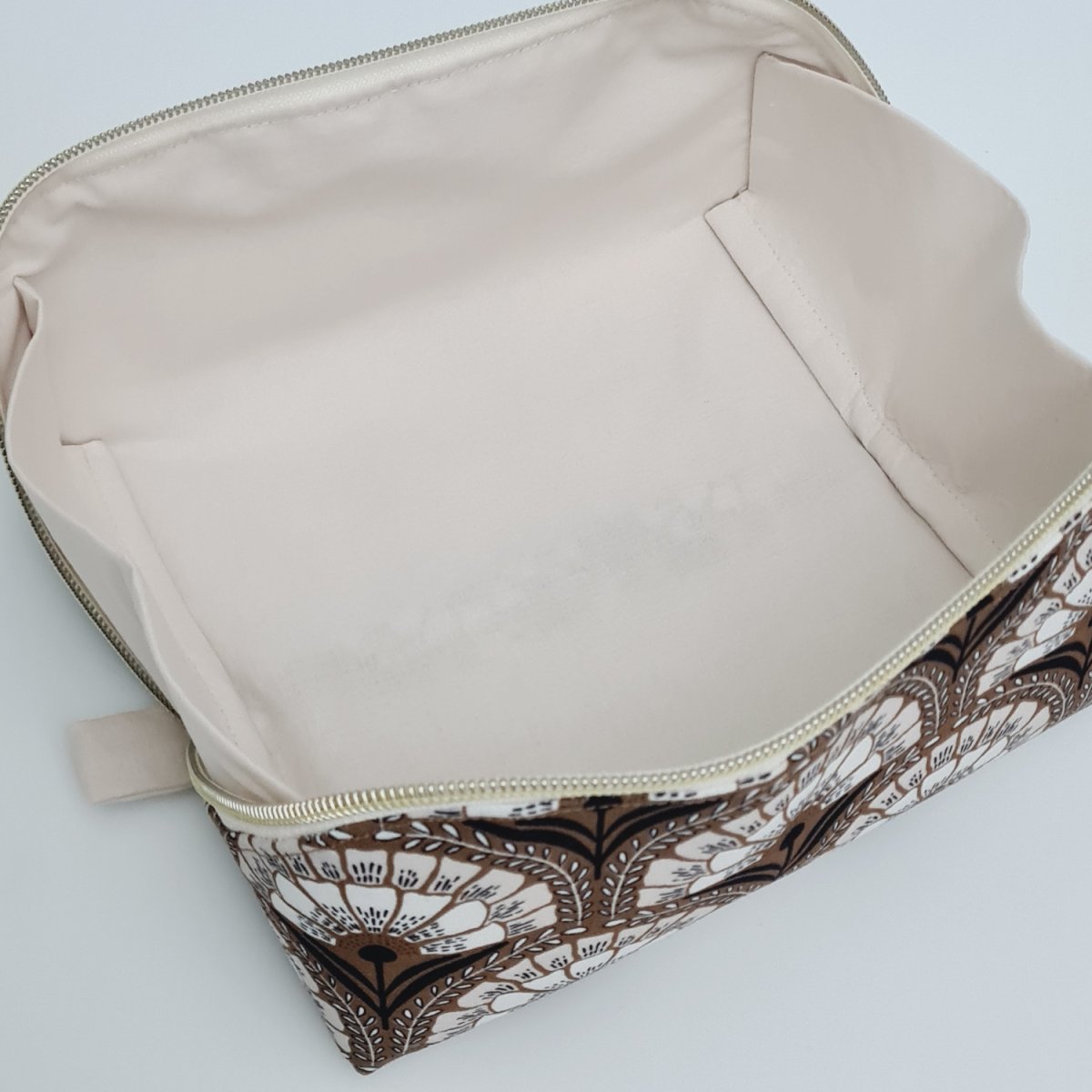 Grâce à son format carré, cette trousse se transforme en un petit panier une fois ouverte, offrant un accès facile à son contenu. Fabriquée avec un intérieur en coton, cette trousse est à la fois pratique et esthétique.