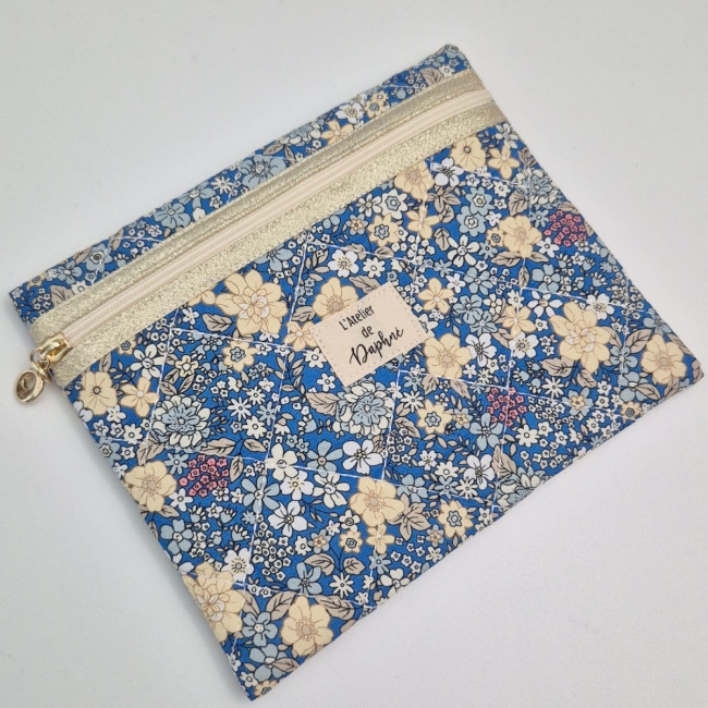 Avec ses dimensions de 13 x 16 cm, elle se glisse facilement dans un sac à main, un cabas ou une valise. Son joli détail raffiné : un biais doré en lurex le long de la fermeture éclair, accompagné d’un zip doré pour une touche élégante et lumineuse.